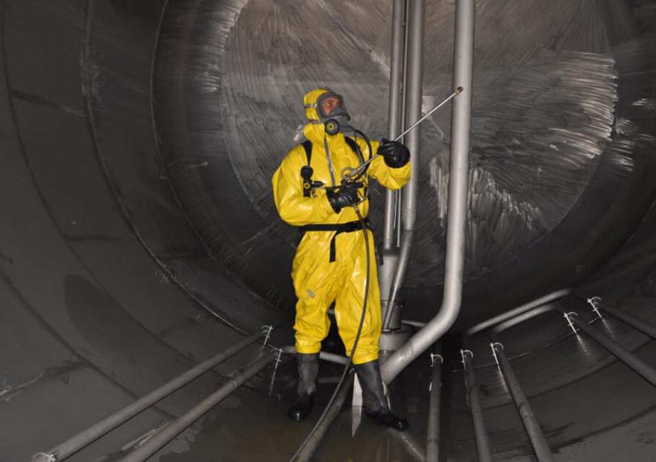 TECO Chlor is extremely efficient to remove red and/or yellow dye discoloration or stains in cargo tanks in tankers caused by carriage of dyed gasoline cargoes
